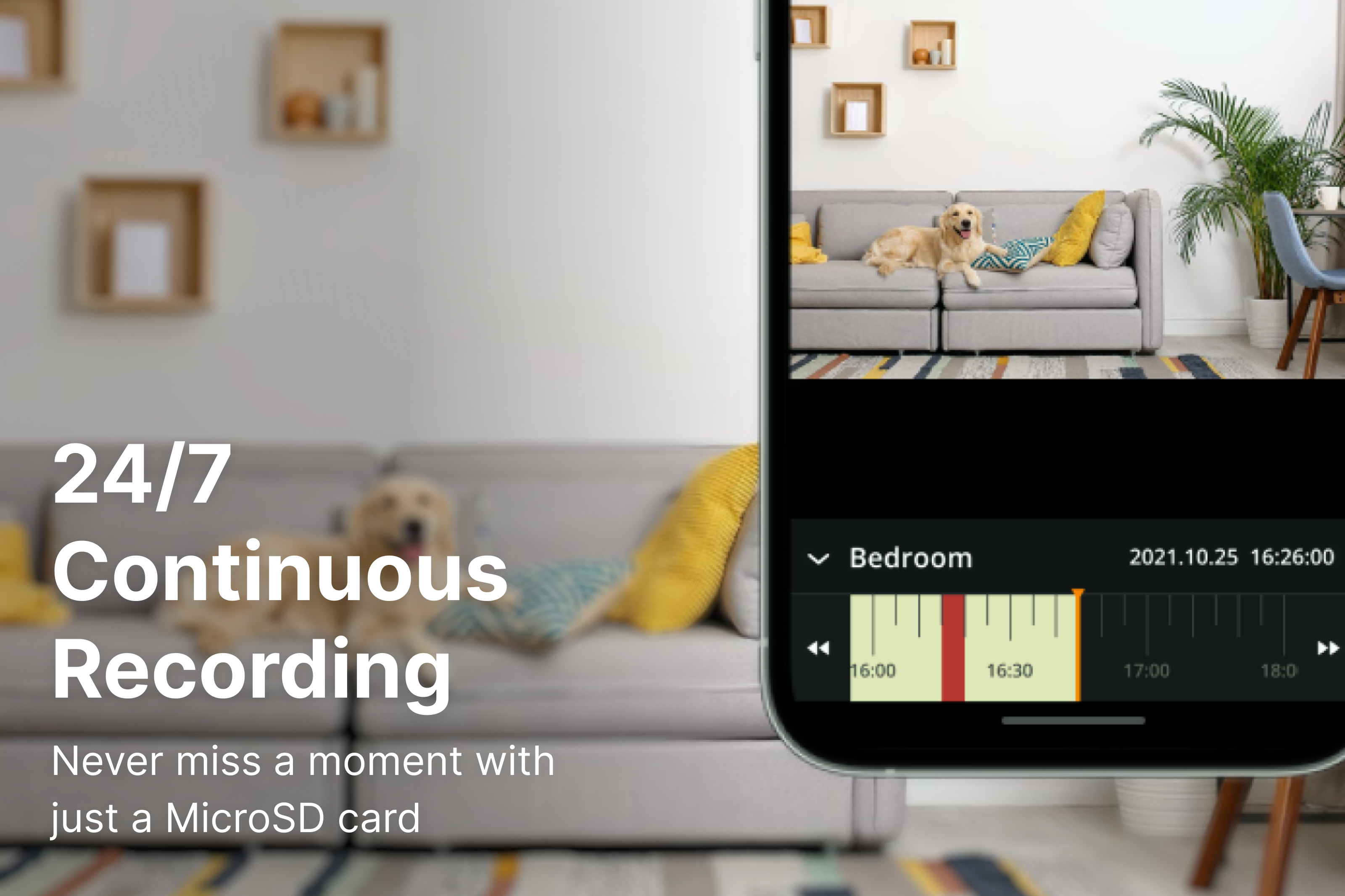 Record continuously without missing any important moments (MicroSD card required, playback feature** is only available in the AlfredCamera APP premium plan)