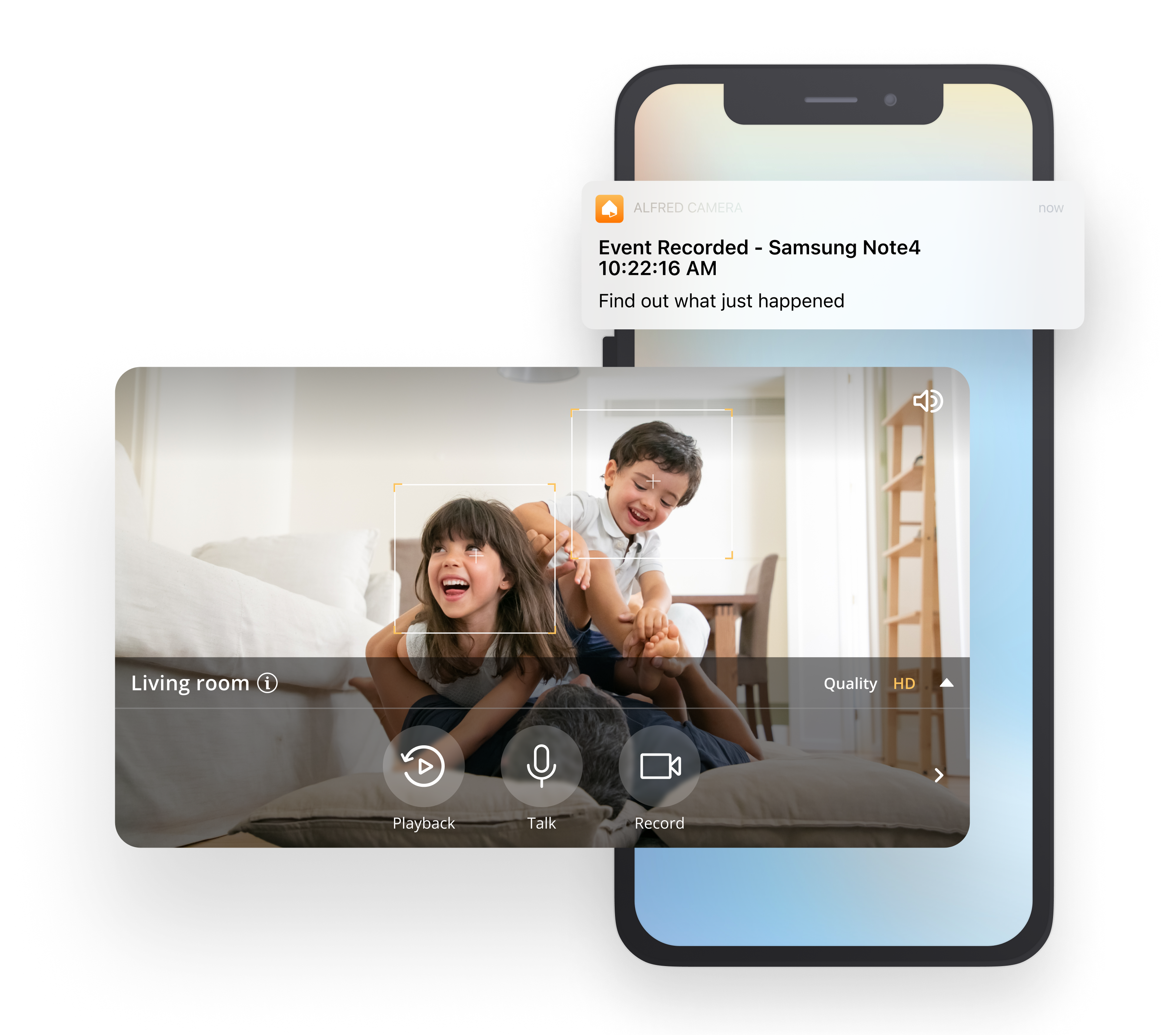Graba continuamente sin perderte ningún momento importante (se requiere tarjeta MicroSD, la función de Reproducción** solo está disponible en el plan Premium de la aplicación AlfredCamera)