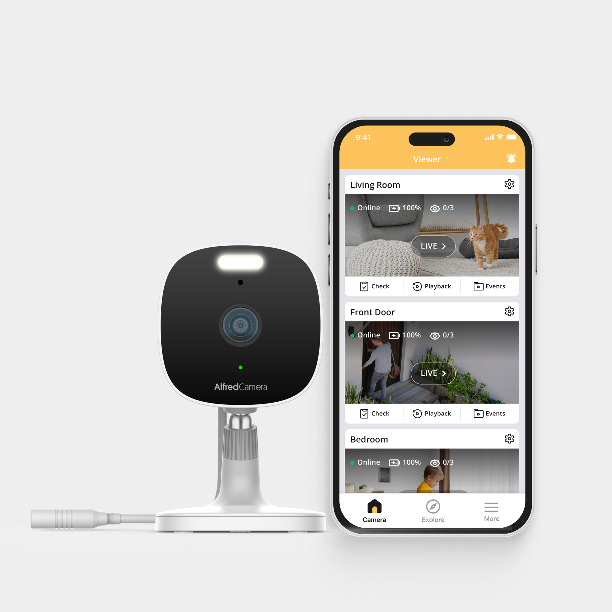 Obtén video ultra-claro 2.5K, alertas inteligentes y un foco LED integrado para detener las amenazas de inmediato. Ya sea tu puerta principal, entrada del garaje o patio trasero, AlfredCam te mantiene al tanto y protegido 24/7.