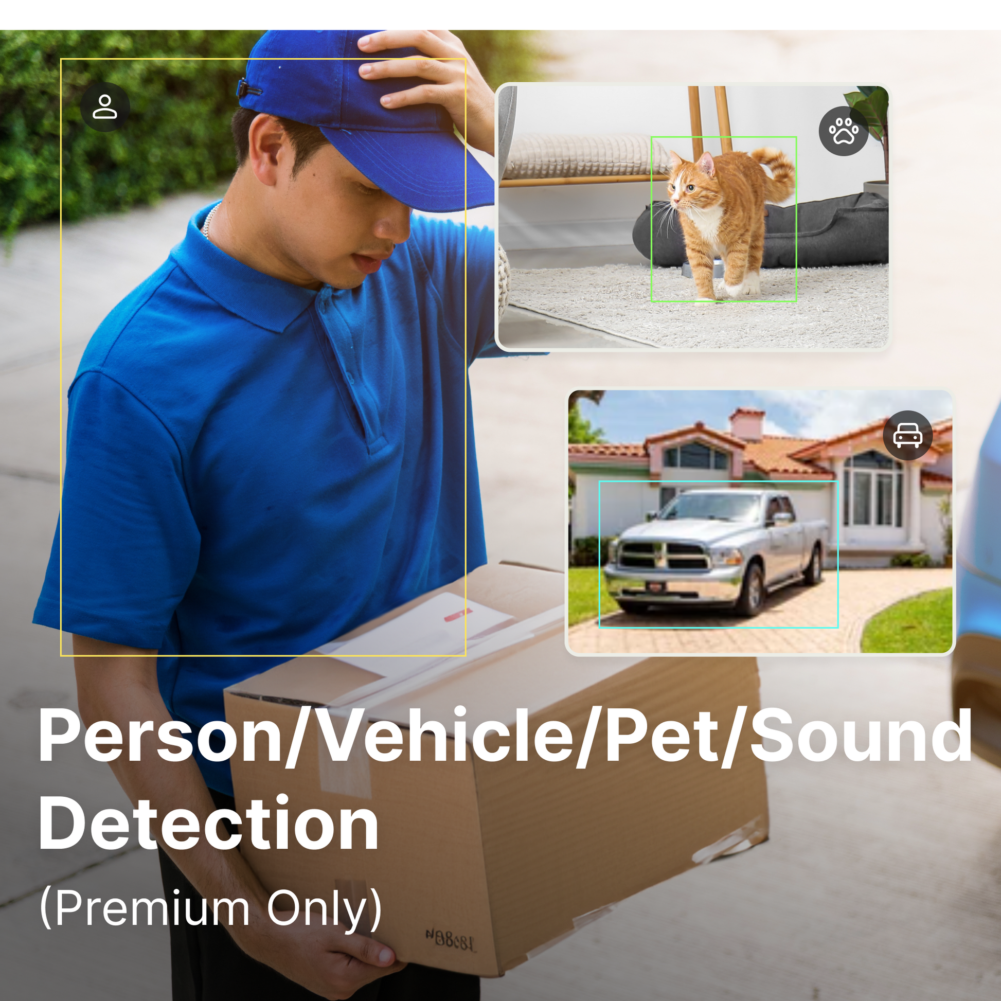 La tecnología IA avanzada detecta personas, mascotas, vehículos y sonidos. Recibe notificaciones instantáneas en tu smartphone y filtra alertas para concentrarte solo en lo que más importa. Solo Premium.