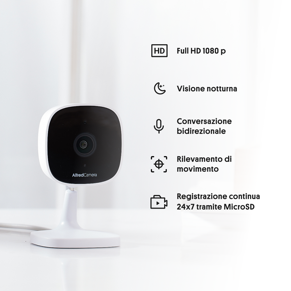 Record continuously without missing any important moments (MicroSD card required, playback feature** is only available in the AlfredCamera APP premium plan)